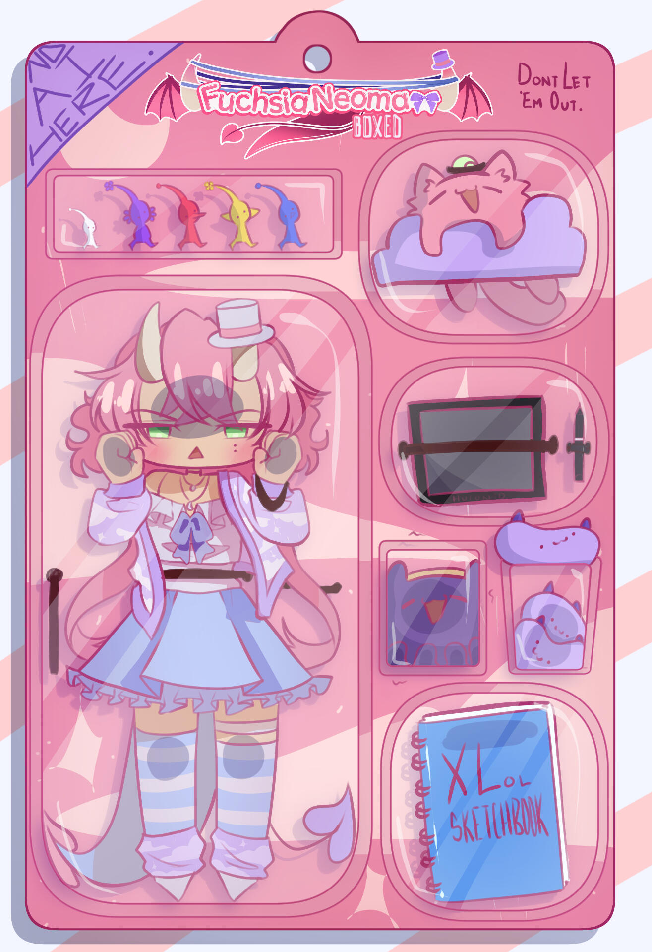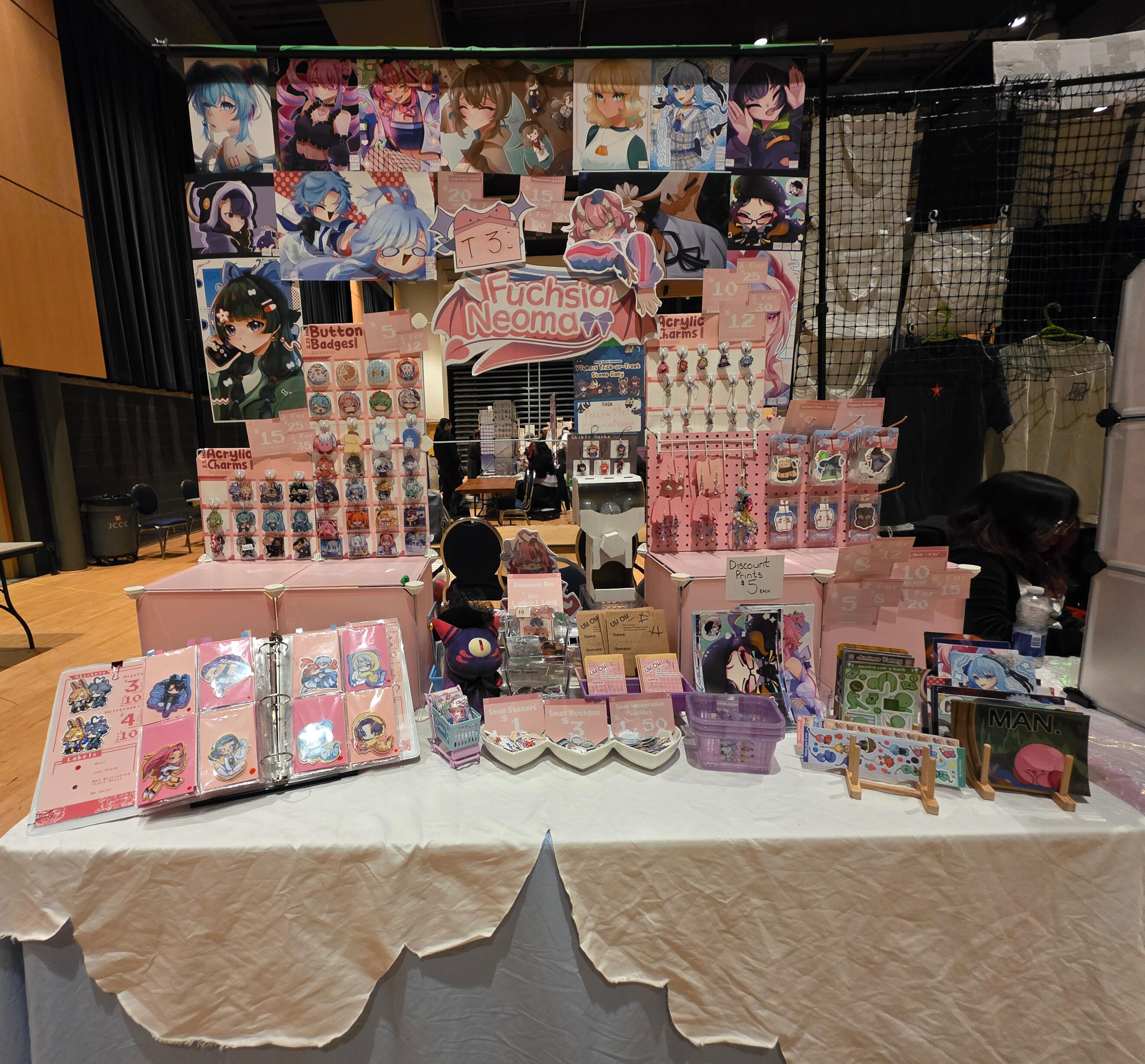Fuchsia Peaches is an art team formed with myself and Peachisu! Together we do markets, conventions, and run an oline store together. The two of us collaborate with different art styles selling handmade stickers, prints, charms, jewelry and much more! Find art collabs, merch, and more at our booths or on our socials!